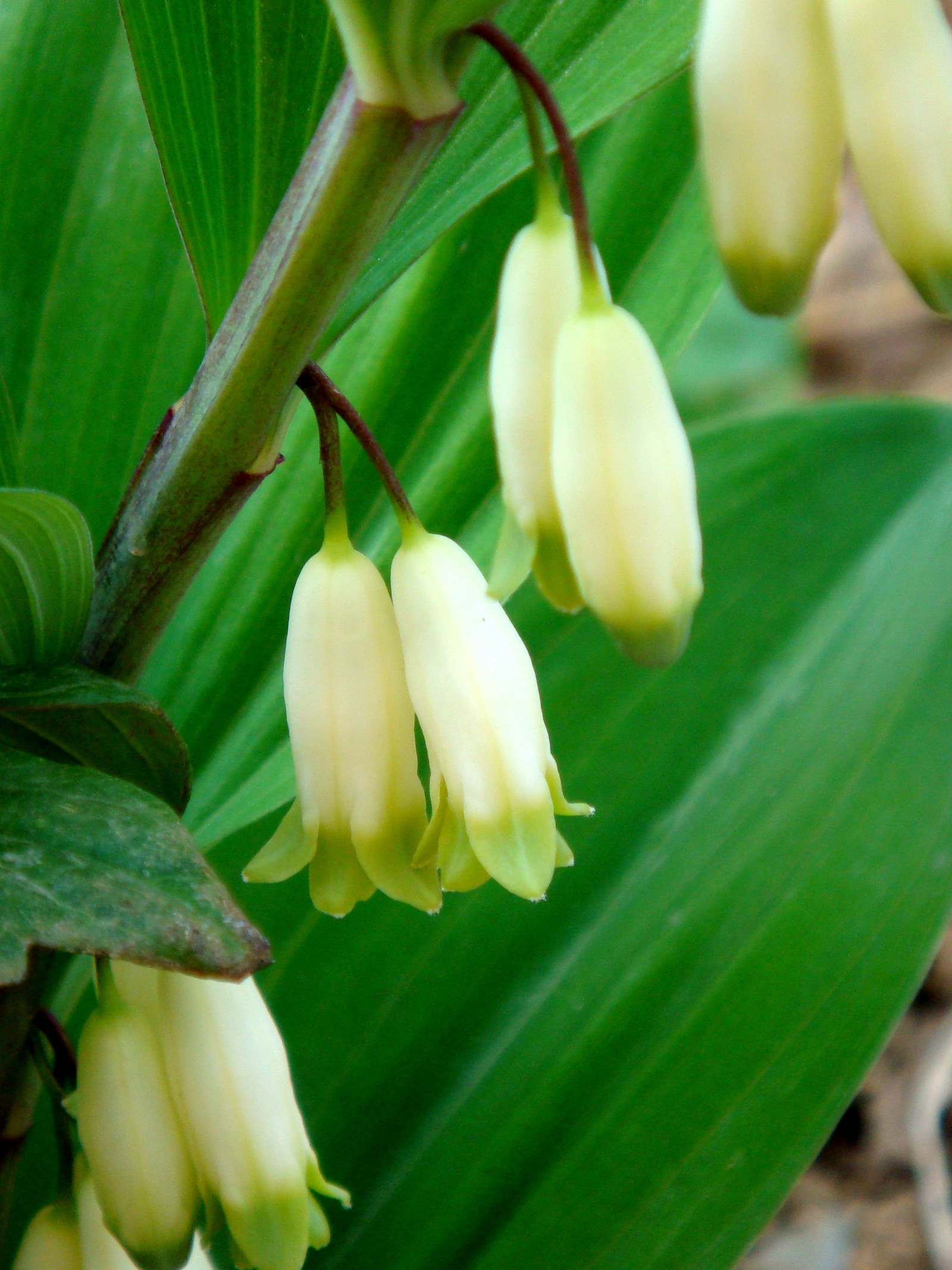 根状茎圆柱形,直径5-14毫米。茎高20-50厘米,具7 12叶。叶互生,椭圆形至卵状矩圆形,长5-12厘米,宽3-16厘米,先端尖,下面带灰白色,下面脉上平滑至呈乳头状粗糙。